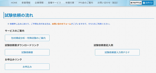 分析依頼をご希望の際は、弊社ホームページより試験依頼書をダウンロードしていただき、