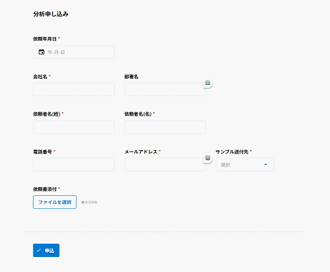 ② 「お申込みリンク」から分析申し込みページへアクセスし、必要事項を記入の上